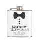 These fun liquor flasks are designed specially for the groomsmen. They feature a fun design of a black tie with three buttons on a white background, conjuring the idea of a tuxedo. The text reads "Groomsman" and has a space for his name as well as the wedding couple & date. Perfect favour or gift, and a great way to thank him for being in your wedding party.