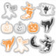 Halloween black cat, flying witch, ghost, boo, jack o lantern, pumpkin, half moon, spooky funny stickers.