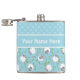 A fun Hip Flask to personalise, with a mix'n'match design of comic Sheep and a coordinating 'stitches' pattern, both on a light Sky Blue background.