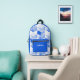 The geometric artwork features cubes in various shades of blue. Personalise this bright piece of art or purchase as is.