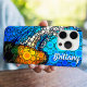 Fun blue ocean orange marine jellyfish script name Case-Mate iPhone case