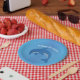 This paper plate a fun blue dolphin with a sparkle like texture in a jumping position on a bright blue watery background. Customise the Happy Birthday text with the templates.