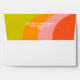 Fun Bold Retro Citrus Wedding envelopes Personalised with return address from Ricaso .. created in zesty green orange pink colours with a coordinated interior.