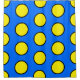 This fun colourful design features large yellow tiled circles, outlined black, against a bright blue background.