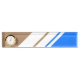 This modern, sleek design features white diagonal racing stripes against vibrant bright blue and light brown backgrounds.