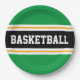 Fun Bright Green Black Yellow BASKETBALL Stripes Paper Plate