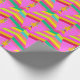 Brightly striped Christmas trees layered on a fuchsia pink background decorate this unique Christmas gift wrap. Make a fun vibrant splash with this bold geometric pattern wrapping paper. Modern. Maximal. Bold. Bright and Merry. This fun Christmas gift wrap blends tradition with modern maximalism. A unique vibrant style for your Christmas and Holiday gifts with shades of pink, orange, green, red, yellow, and turquoise.