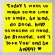 This is a fun inspirational poster that says 'Today I want to make some time to smile, be kind, do good, help someone in need, be grateful, say 'I love you' and be happy!' written in cool 'dancing' letters on a neon yellow background! Great for the bedroom!