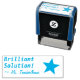 This positive rubber stamp design features the motivational feedback message "Brilliant Solution!" and a personalised educator name. It also features a decorative star shape. It could be used by a teacher, educator, or tutor when marking assignments, to indicate that a student has done well.