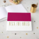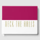 This elegant holiday design features a burgundy red top half colour block against a crisp, white background below. The tall, slim golden brown text in the white colour block spells out "DECK THE HALLS" and can be personalised.
