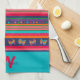 Fun Butterfly Stripe Stylish Initial Last Name Tea Towel