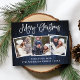 Modern Fun Calligraphy Script Merry Christmas 3 Photo Holiday Postcard - Rustic Country Blue Wood