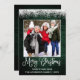 Modern Fun Calligraphy Script Merry Christmas Family Photo Holiday Card - Rustic Country Green Wood topped with Snow