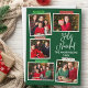 Modern Fun Calligraphy Script Feliz Navidad Merry Christmas 5 Photo Collage with Craft Tape Holiday Card. Forest Green Background.