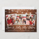 Modern Fun Calligraphy Script Have a Holly Jolly Christmas 3 Photo Holiday Card - Rustic Country Wood and String Lights