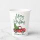 Modern Fun Calligraphy Script Green Merry Christmas Watercolor Vintage Red Truck with Christmas Tree Paper Cups