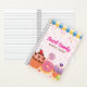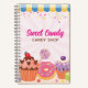 A fun, bright and colourful candy shop design. Bursting with designs that will catch any sweet tooth's eye from ice cream cones, candy, chocolate-dipped strawberries, doughnuts, cupcakes, candy, popsicles and lollipops. This notepad is a great fit as business use for candy shops, bakeries, chocolate stores and also sweet tooth people who love desserts and wants to have a notebook, journal or diary with desserts on it.