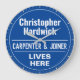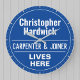 Fun Commemorative Style Wall Plaque Gift in the form of a Wall Clock for a Carpenter & Joiner. Blue and white plaque. Edit the design to change the wording to suit the gift recipient.