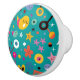 fun cartoon pattern teal ceramic knob
