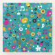fun cartoon pattern teal glass coaster