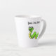 This Latte mug has a fun cartoon type snake who is bright green and yellow with big white eyes. Customise your text with the template.