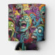 Multiple cartoon-like zombie faces, each with exaggerated expressions, cover the flask’s surface. These zombies exhibit various skin tones—green, purple, and blue—and sport wide eyes and open mouths, revealing sharp teeth. Some appear to be screaming, while others convey shock or horror. The intricate design creates a sense of chaos and intensity, making it appealing for fans of horror-themed artwork.