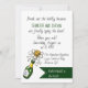 Fun wedding invitation done in a casual theme, with a cartoon bottle of champagne and dark green accents on a white background. Personalise the text to suit your wedding needs.