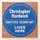Fun Commemorative Style Wall Plaque Gift in the form of a Glass Coaster for a Chartered Accountant. Blue and white plaque. Edit the design to change the wording to suit the gift recipient.