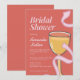 Toast to love and laughter with this Fun Cheers Bridal Shower Invitation, perfect for a festive and lively celebration. Featuring a bold coral background, modern typography, and playful illustrations of champagne and ribbon, this design sets a joyful tone for your bridal party.