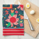 Fun Chic Modern Floral Positive Vibes Only Quote Tea Towel