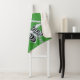 This Sherpa fleece blanket has a fun skeleton holding red and green ornaments up to his eye sockets wearing a red Santa Claus hat on a green background with gold flecks and two red stars. Customise the Merry Christmas text with the template.