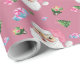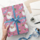 Vibrant wrapping paper adorned with whimsical Santa faces, colourful gifts, and cheerful trees, perfect for adding joy to any holiday present this Christmas season.