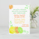 Colourful invitation done with graphics of slices of lemons, oranges, and limes, with green branches with leaves, against a white background. Colourful green, orange, and golden yellow text is ready to personalise for your Summer party. Great for picnics, barbecues, pool parties and so much more.