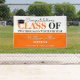 Fun yard sign featuring your congrats to the graduate in a classy and fun colour combo of black, white and orange