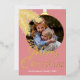 Contemporary classic Christmas holiday season greeting card with white coloured pine tree needles wreath leaves pattern on a classy blush pink background, with real gold foil Merry Christmas wish text. With option and room to customise the text, family name and year date, and add a personal photo of your choice on the front, and a customisable season greeting message on the backside of the card.