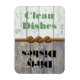 Practical and stylish clean / dirty dishwasher magnet, graphics of a white washed wooden fence on one end, and rustic dirty wood fence boards, on the opposite end of the magnet. Graphics of a knotted rope decorates the middle of the magnet, and green and black reads, Clean Dishes and Dirty Dishes, on the other end. Great little gift idea for anyone.