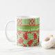 A fun white Coffee Mug to personalise, with two country-style, mix'n'match patterns of cute red dragons on a green and white check gingham background.
