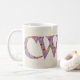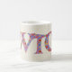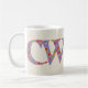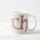 A fun Coffee Mug with the Welsh word 'cwtch', meaning 'cuddle' or 'hug', in a Celtic script, filled with a pretty floral pattern on a linen-look background.