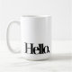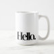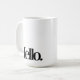 Enjoy a fun, simple design with this 15-ounce large coffee mug, showcasing a minimalist "Hello" typography. Available in both 15-ounce and 11-ounce sizes, this mug is conveniently safe for microwave and dishwasher use.