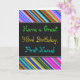This fun, colorful and whimsical birthday-themed greeting card design features a warm birthday wish like "Have a Great 43rd Birthday, First-Name!" on the front. The name on the front can be customized. The top and bottom of the front feature a vibrant, multicolored stripe pattern. The inside features a birthday message that can be personalized. A greeting card like this could be a fun way to deliver birthday wishes to somebody who is celebrating their forty third birthday. [~Z0000269]