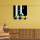 Fun coloured bouncing balls in an isometric room in black and white is the theme of the poster wall decor. The room isometry shows a diamond chequered floor, one striped wall, and one solid-coloured wall. Customise any background colour with black and personalise the coloration of the circular shapes.  For enquiries about custom designs, please feel free to contact us at https://t.me/KBMD3signs_chat.