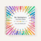 Fun and colourful school teacher notebook personalised with the teacher's name surrounded by coloured pencils, some with patterns, in soft rainbow colours. Kindergarten teacher's spiral notebook with colourful stars, and pencils in soft shades of the rainbow, with some patterns like stripes, dots, and stars. Jot down your teacher's notes this fall semester and spring semester in this square spiral notebook with custom pencil grey text in a hand-writing font where you can add your name, the purpose of the notebook, and the year. Perfect for an elementary school teacher, kindergarten teacher, pre-school teacher, art teacher, and more.