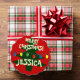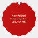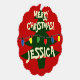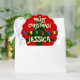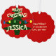 Fun colourful Christmas tree light bulbs paper Ornament Card for kids and adults. Playful design with colourful light bulbs and custom seasons greeting message. Personalizable with name of adult or child. Red or custom background colour. Fun cheerful print for the Xmas season. Easy to hang up in the tree.