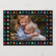 Unique, classic, trendy, pretty and decorative Holiday card. Cute Happy Holidays greeting text and room to customise or personalise with a photo, family name (or individual names) and message of your choice. Framed by colourful FA LA LA word art on a black background.