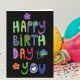 This card has the words "Happy Birthday to you" in bold typography and vibrant colours, making it a fun and festive way to celebrate a memorable day. The text inside can either be edited or entirely removed.