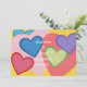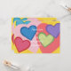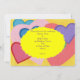 This bright and festive, colourful painting of layered hearts, is printed on custom wedding invites. The hearts are layered over other hearts. Most of the hearts are also two shades, adding to the festive vibe. The text is easily personalised on the template forms. The hearts consist of shades of pink, blue, red, green, and purple on a yellow background. There is a yellow centre to type in your details on the back of the invitation. There are matching items in this store. Thank you for shopping at CherylsArt on Zazzle.