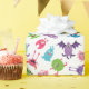 Attending a monster mash or monster-themed baby shower? Wrap your gifts with this fun monster-themed wrapping paper full of cool and cute monsters in green, blue, purple, and pink with different features, like horns, fur, bat wings, and slime.