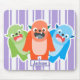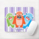 Bright and colourful trio of furry monsters on personalised kids mouse pad.