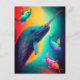 Fun Colourful Narwhal Fantasy Sea Creatures Rainbo Postcard