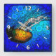 Fun, colourful, ocean jellyfish photo circle art square wall clock